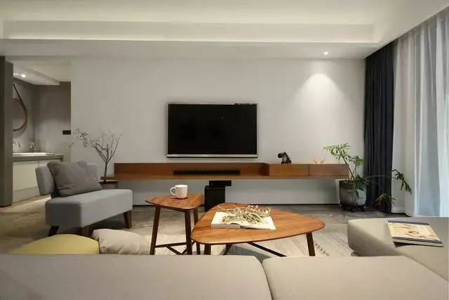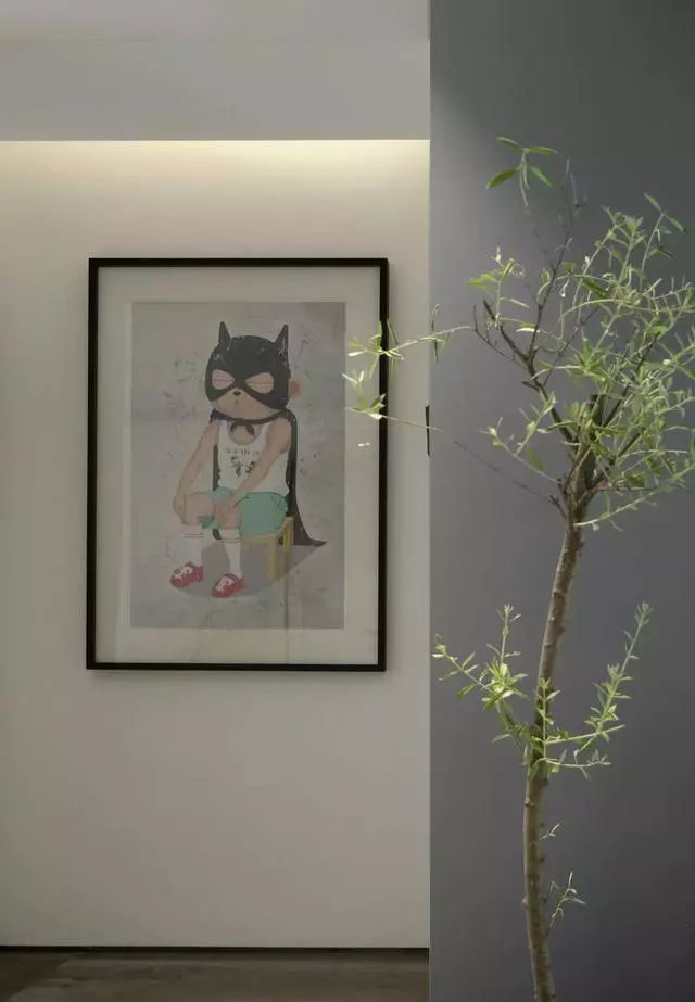 在电视墙的处理,设计师巧妙的利用留白艺术设计,简单的墙面,搭配上电视柜与绿植点缀,留下无尽的想象空间。