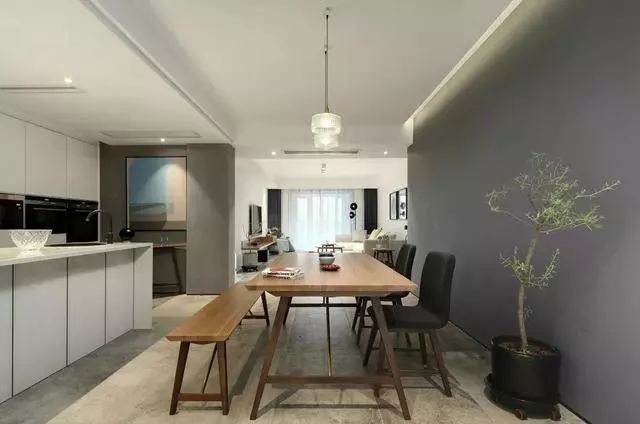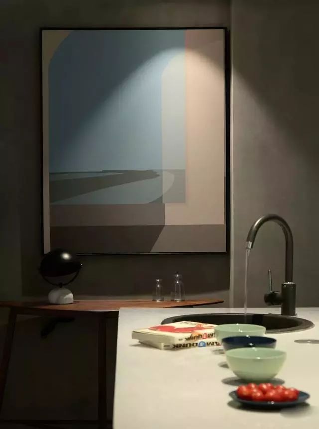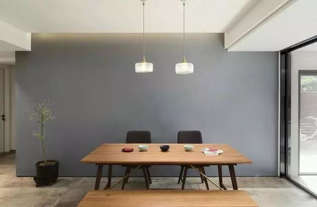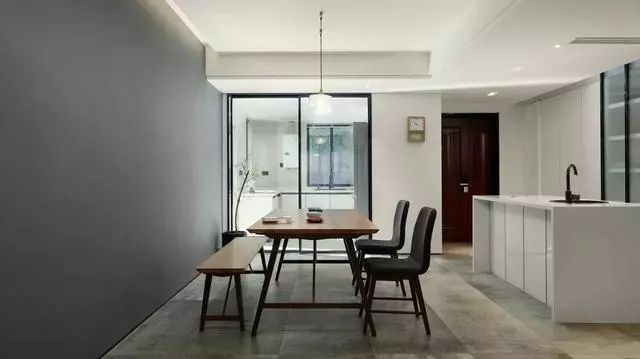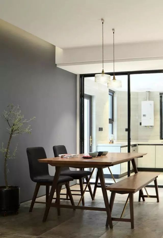 几乎留空的餐厅背景墙,在火药黑的乳胶漆装饰下,打造出轻松愉悦的生活状态,无拘无束,不随波逐流,保持个性,留住岁月的美好。